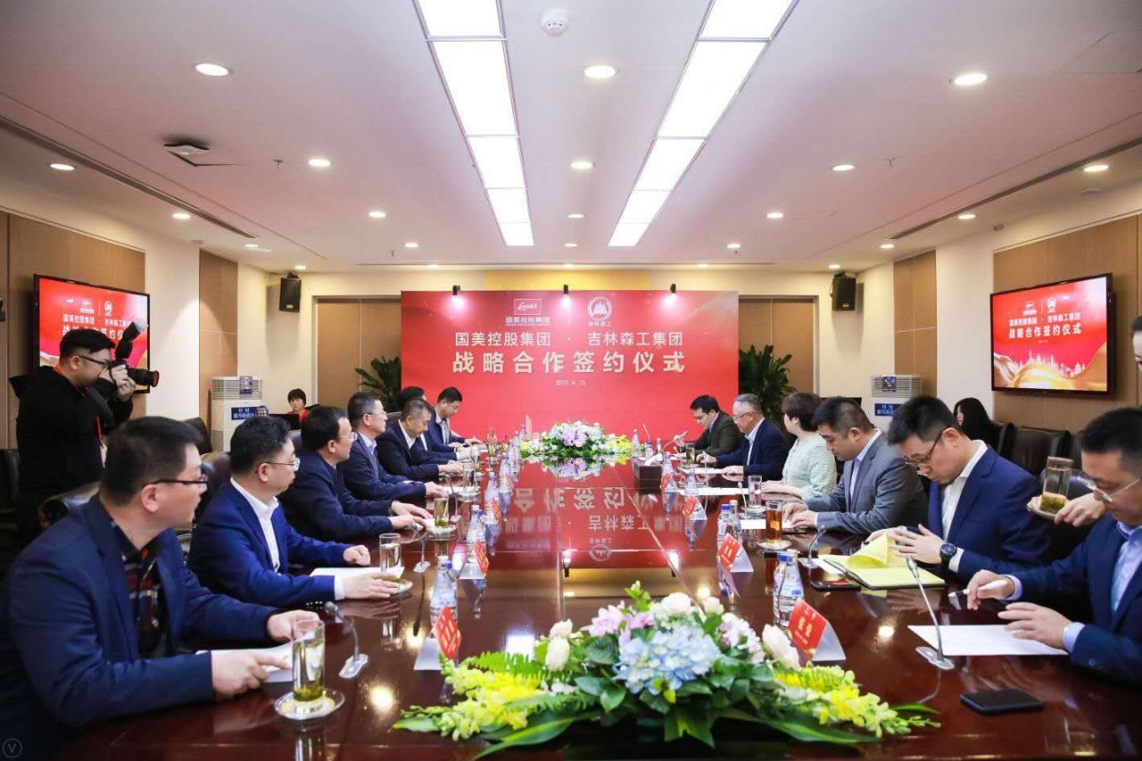 ? ? ? ? ?2019年4月13日,吉林森工集團(tuán)與國美控股集團(tuán)戰(zhàn)略合作簽約儀式在北京市國美控股集團(tuán)總部鵬潤大廈舉行。泉陽泉作為吉林森工集團(tuán)的重要子公司之一,秉承著“開放資源、優(yōu)勢互補(bǔ)”的合作精神,將與國美控股在線上線下等多方領(lǐng)域開展深入合作,從零售端開辟泉陽泉全新銷售模式,共同探討未來經(jīng)營的創(chuàng)新方法。
